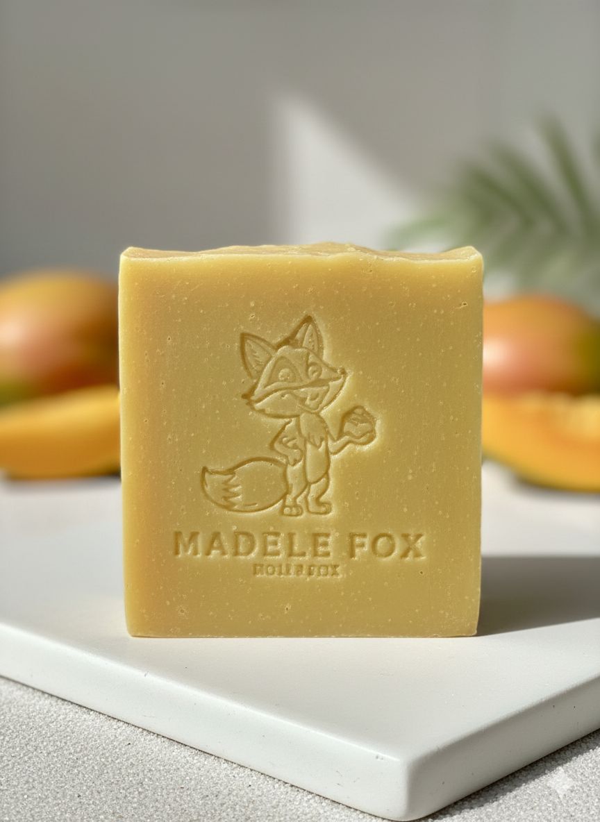 A bright, juicy bar that brings a burst of tropical sunshine to your day. Fresh mango and sweet papaya notes melt together in a creamy, conditioning soap base enriched with olive, sunflower, coconut, and avocado oils. A touch of Yellow Brazilian Clay adds a soft golden glow while giving the bar a silky, luxurious feel. Light, fruity, and uplifting โ perfect for a refreshing shower any time of day.
